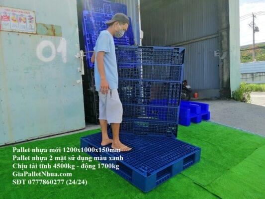 - Pallet nhựa 2 mặt mới kích thước 1200x1000x150mm màu xanh 17kg hiện tại có giá bán lẻ số lượng dưới 10 cái áp dụng giá đã niêm yết tại website GiaPalletNhua.com