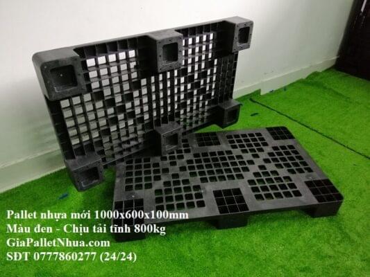 - Pallet nhựa mới kích thước 1000x600x100mm màu đen hiện tại có giá bán lẻ số lượng dưới 10 cái áp dụng giá đã niêm yết tại website GiaPalletNhua.com