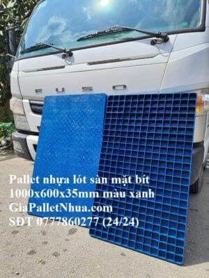 - Tên sản phẩm: Pallet Nhựa Không Chân Lót Sàn Mặt Phẳng 1000x600x35mm Màu Xanh